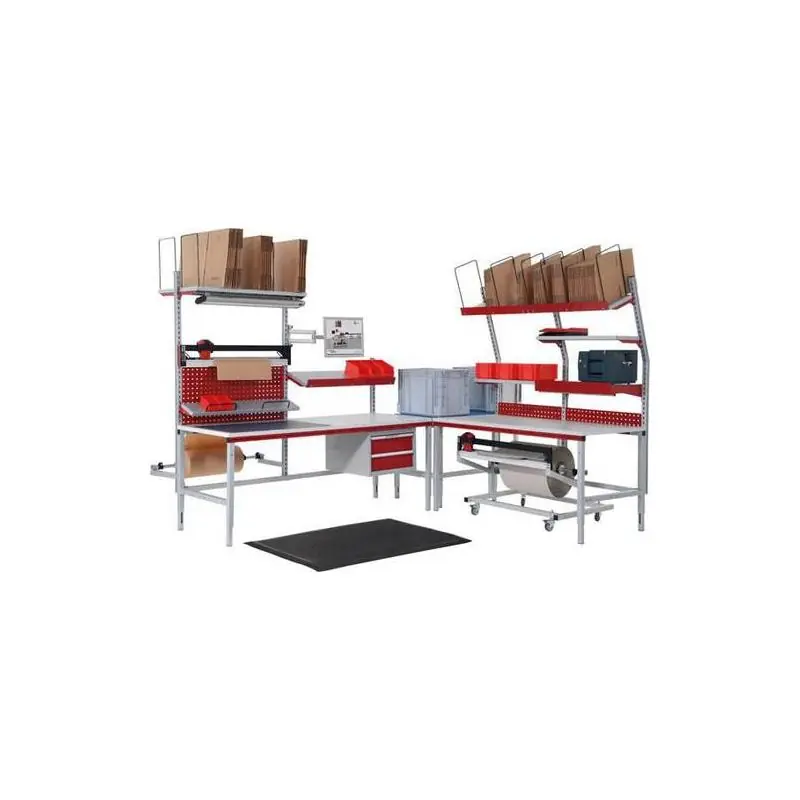 - Certifikovaný ergonomický výrobek (k 08.05.15). Zlepšuje polohu úchopu zásobníků a příslušenství, a tím i držení těla na pracovišti. - Možnosti kombinování Možnosti provedení od jednoho pracoviště až po balicí linku. Horní část profilů nástavby lze namontovat se sklonem 20 stupňů. Oddělení sloupků od základny stolu umožňuje vodorovné přemístění nástavby pro zapojení do dopravníkových systémů.