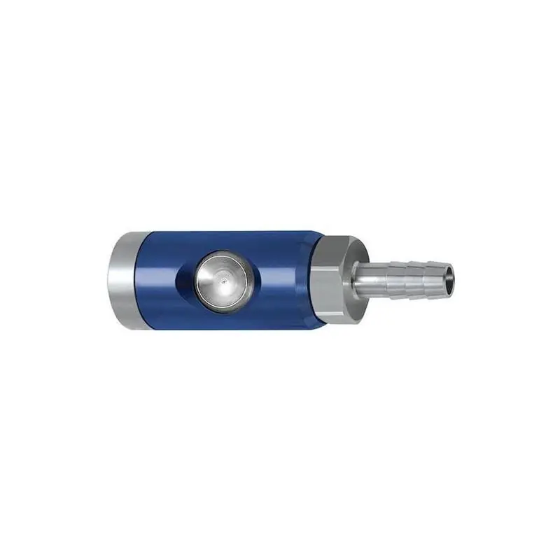 Konstrukce: Tlačítkové provedení. Pouzdro je vyrobeno z hliníku s těsněním Perbunan odolným proti olejům a teplu, knoflík a ventil jsou vyrobeny z kalené pozinkované oceli, vnitřní části jsou z nerezové oceli a závit je z poniklované mosazi. Průtok je 1800 l/min (deltap = 1 bar) při tlaku 6 bar. Tyto spojky odpovídají normě ISO 4414. Technika: Spojení se provádí zatlačením zástrčky. Po slyšitelném záběru je spojka zablokována. Odpojení se provádí dvojím stisknutím tlačítka. Při prvním stisknutí tlačítka se spojka odvzdušní, ale zátka zůstane ve spojce zajištěna. Po druhém stisknutí se zástrčka uvolní. Poznámka: Provozní tlak max. 12 barů. Spojovací zátka viz obj. č. 9448.
