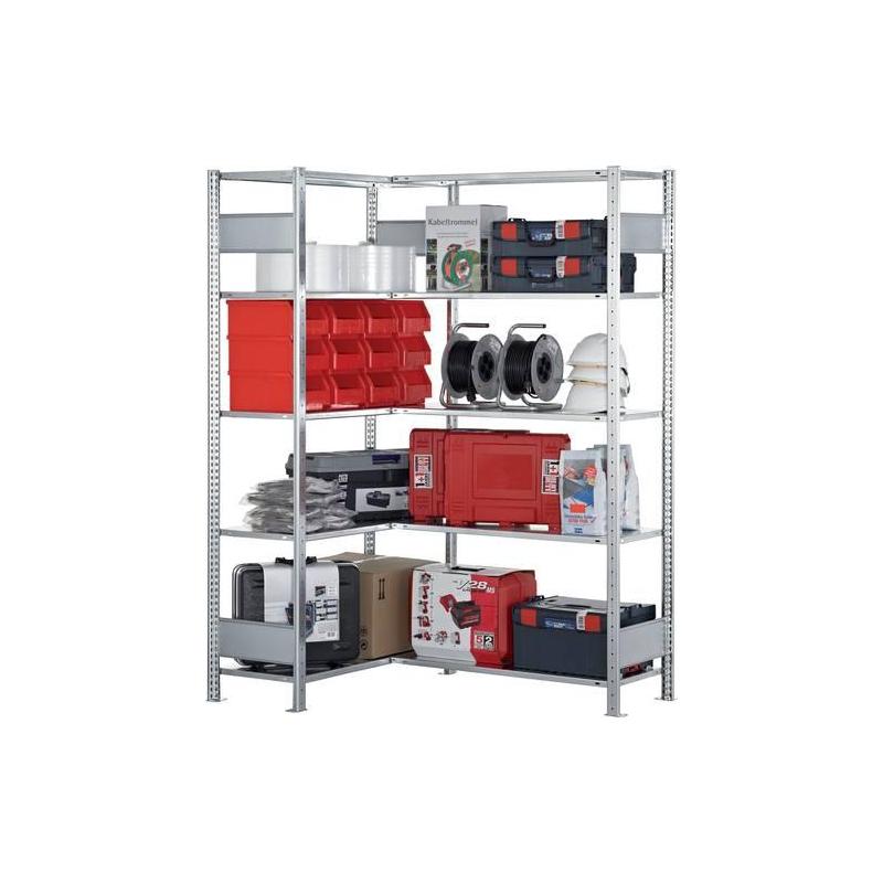 Výška 2500 mm: Rohový regál s 12 policemi, přídavná police s 6 policemi