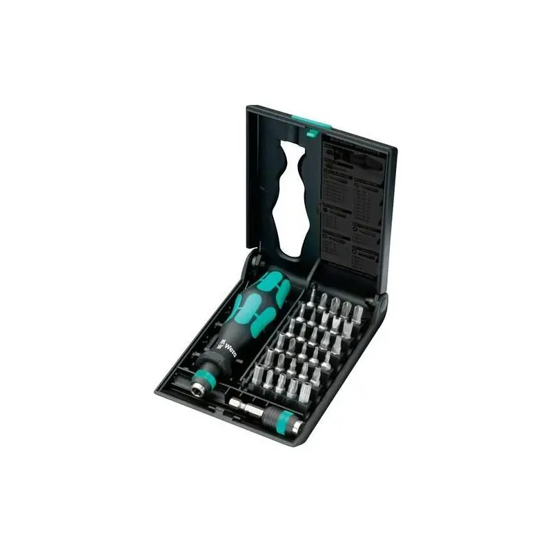 Design:S odolnými bity. Rukojeť Kraftform Plus z nárazuvzdorného plastu s integrovanými měkkými zónami pro lepší úchop a ochranu proti odvalování má rychloupínací sklíčidlo Rapidaptor. To znamená, že bity jsou pevně a bez viklání spojeny s rukojetí, a přesto je lze bleskově vyměnit. S objímkou volnoběžky pro snadné držení při šroubování strojem. Bity a rukojeť jsou přehledně uspořádány v plastové krabičce.