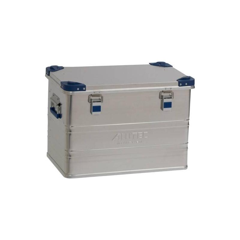 Design: Vyrobeno z 1 mm hliníku, s obvodovým gumovým těsněním ve víku, odolné proti stříkající vodě a necitlivé na povětrnostní vlivy. Má 2 rozměrná madla na bocích pro snadné přenášení. Se silnými, robustními závěsy a popruhy pro zamykání. Snadno stohovatelné díky speciálním rohům a profilům základny. Uzamykatelný pomocí 2 sklopných západek a přídavného uzamčení visacím zámkem (není součástí dodávky). Základní rozměry odpovídají rozměrům palet.