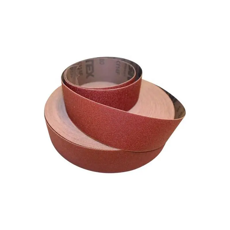 Provedení: Rozptyl korundu vázaný syntetickou pryskyřicí (A) na velmi pružné tkanině (hnědá), rovnoměrný a mírně otevřený. Velmi dobrá přilnavost zrn, dlouhá životnost, nízký kontaktní tlak a velmi dobrá přizpůsobivost. Délka role 50 metrů.