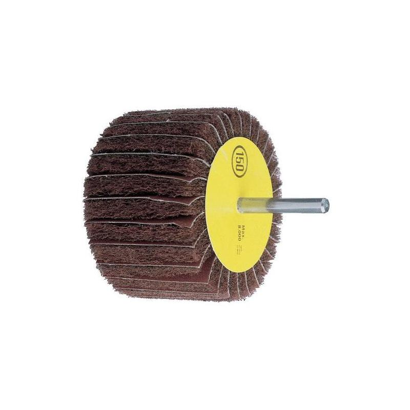 Konstrukce: Korundové klapky (A), ze zrnitosti 240 klapek z karbidu křemíku (SiC). Mopové kolíky z rouna jsou radiálně uspořádány s abrazivním rounem a korundovými chlopněmi v poměru 1:1 kolem jádra. S upínací stopkou 6 mm.