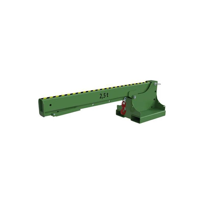 Teleskopický nakladač KT/KTH, RAL 6011 zelená reseda - Rozšíření dosahu vysokozdvižného vozíku. Robustní ocelová konstrukce. Pojistka řetězu proti nechtěnému sklouznutí. Všimněte si nosnosti vysokozdvižného vozíku. - Verze s pevnou délkou 1 otočný hák, 5 možných poloh háku. Typ KTH-K: výškově nastavitelný, každá poloha zajištěna čepem, 3 úhly nastavitelné 15°, 30° nebo 45°.