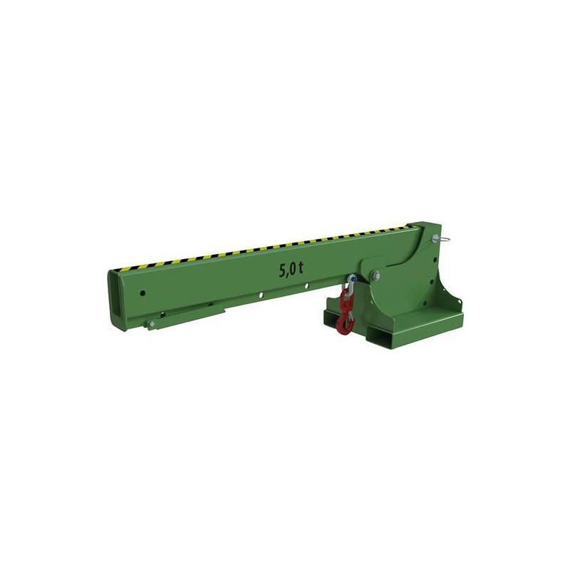 Teleskopický nakladač KT/KTH, RAL 6011 zelená reseda - Rozšíření dosahu vysokozdvižného vozíku. Robustní ocelová konstrukce. Pojistka řetězu proti nechtěnému sklouznutí. Všimněte si nosnosti vysokozdvižného vozíku. - Verze s pevnou délkou 1 otočný hák, 5 možných poloh háku. Typ KTH-K: výškově nastavitelný, každá poloha zajištěna čepem, 3 úhly nastavitelné 15°, 30° nebo 45°.