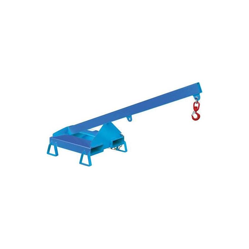 Zátěžové rameno LA/LAT, RAL 5012 světle modrá - Rozšíření dosahu vysokozdvižného vozíku. Robustní ocelová konstrukce. Vstupní kapsy pro vidličky. Vhodné také pro drápové vysokozdvižné vozíky. Zámek řetězu proti náhodnému sklouznutí. 1 otočný nákladní hák. Tip: Věnujte pozornost nosnosti vysokozdvižného vozíku! Pevná verze. Sklon 25°, s opěrnými patkami, světlá výška 100 mm