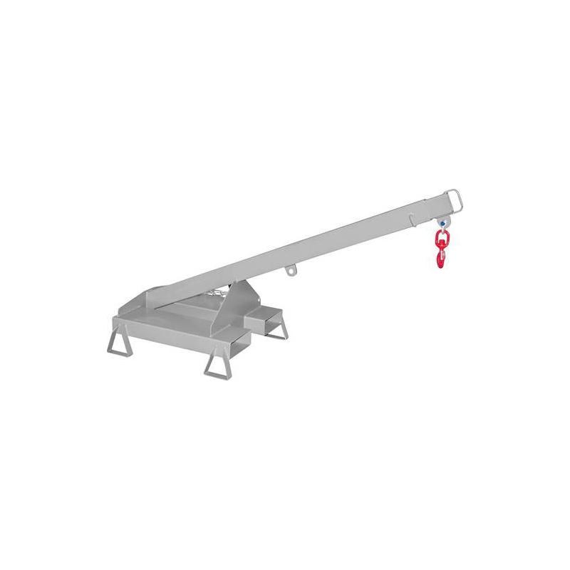 Zátěžové rameno LA/LAT, šedá barva myši RAL 7005 - Rozšíření dosahu vysokozdvižného vozíku. Robustní ocelová konstrukce. Vstupní kapsy pro vidličky. Vhodné také pro drápové vysokozdvižné vozíky. Zámek řetězu proti náhodnému sklouznutí. 1 otočný nákladní hák. Tip: Věnujte pozornost nosnosti vysokozdvižného vozíku! Sklon 25°, teleskopický, každá poloha zajištěna pojistnými kolíky, s opěrnými patkami, podjezdná výška 100 mm
