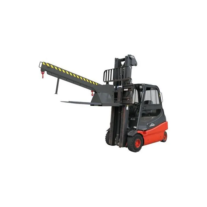 Teleskopické a výškově nastavitelné rameno jeřábu, antracitově šedá RAL 7016 - Pro přepravu nákladu pomocí jeřábových háků na vysokozdvižných vozících. Vhodné pro pracovní procesy, při kterých nelze podjíždět břemena. - Konstrukce z masivních profilových trubek. Teleskopické rameno jeřábu se 2 otočnými háky pro zavěšení nákladu. Nastavitelná délka v 7 krocích. Výška nastavitelná ve 3 krocích až do 45°. Bezpečnostní kolík zabraňující neúmyslnému sklouznutí. Uzamčení přímo na nosníku vysokozdvižného vozíku. Při výběru ramene jeřábu zohledněte uspořádání vozidla. Při výběru ramene jeřábu se doporučuje zahrnout kontrolu kvality.