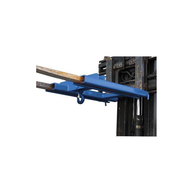 Zátěžový hák, RAL 5010 hořcově modrá - Kapsy pro upevnění radlice vysokozdvižného vozíku. S otočnými a výkyvnými očky. Zajišťuje proti neúmyslnému sklouznutí. Bezpečnostní nakládací hák pro 2 hroty s pojistným kolíkem. Lze použít s vysokozdvižným vozíkem. Včetně otočného háku.