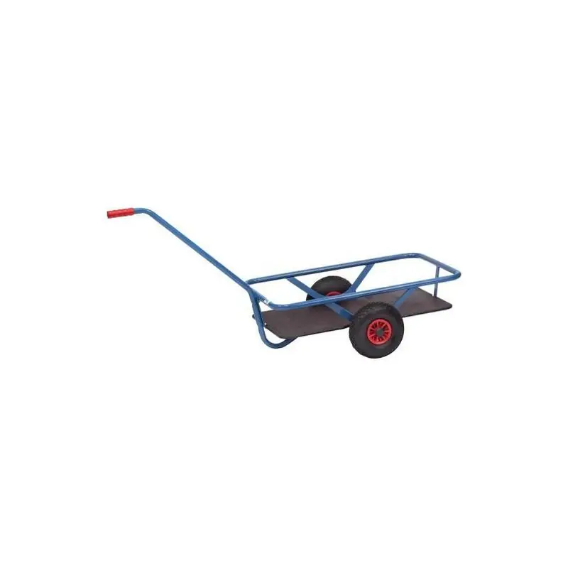 Ruční vozík - Svařeno z ocelové trubky. Práškově lakovaná barva RAL 5007 leskle modrá, oje lze přišroubovat. - Kola s pneumatikami. Náboje s válečkovými ložisky. Připraveno k dodání, snadná vlastní montáž. Nákladová plošina z vodovzdorné překližky.