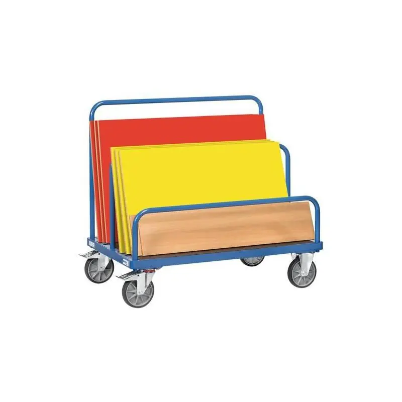 - Profilová a trubková ocel svařovaná. Dřevěná plošina s práškovým nástřikem. - 2 otočná kolečka a 2 pevná kolečka. Pneumatiky TPE, otočná kolečka s brzdami, v souladu s požadavky na Evropská norma EN 1757-3 (bezpečnost plošinových vozíků). - 7 možností nastavení vložených třmenů. Rozteč třmenů lehká 90 mm. Brackety je třeba objednat zvlášť, nejsou zahrnuty v ceně