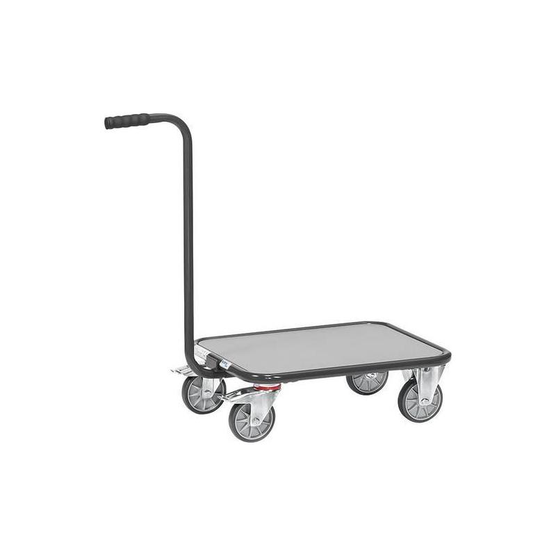 Vozík s madlem na uchopení -Odolný design Dřevěná nebo ocelová plošina, rukojeť válečku ze svařované ocelové trubky, práškově lakovaná, rukojeť lze přišroubovat. -Kola 2 otočná kolečka a 2 pevná kolečka, pneumatiky TPE, náboje s kuličkovými ložisky, brzdy na otočných kolečkách, v souladu s evropskou normou EN 1757-3 (bezpečnost plošinových vozíků).