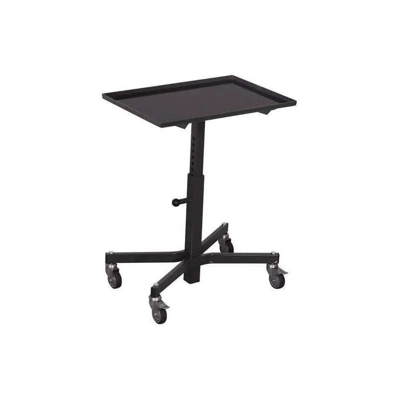 Materiálový stojan - Pro činnosti vsedě a vestoje Trubková ocelová a ocelová sekční konstrukce. Práškově lakovaný, povrchově chráněný, odolný proti nárazu a poškrábání. - Nastavitelná výška a sklon Nastavení výšky v krocích po 25 mm. - Vhodné pro plastové bedny a drátěné koše. Bezpečné uzamčení pomocí pružinové západky. 2 otočná kolečka a 2 kolečka s brzdou s pneumatikami z termoplastické pryže Ø 75 mm. Plošina z ocelového plechu s okrajem na všech stranách, 18 mm. Bezpečné zamykání pomocí pružinové západky. 2 otočná a 2 brzděná kolečka s pneumatikami z termoplastické pryže Ø 75 mm. Náboje s přesnými kuličkovými ložisky.