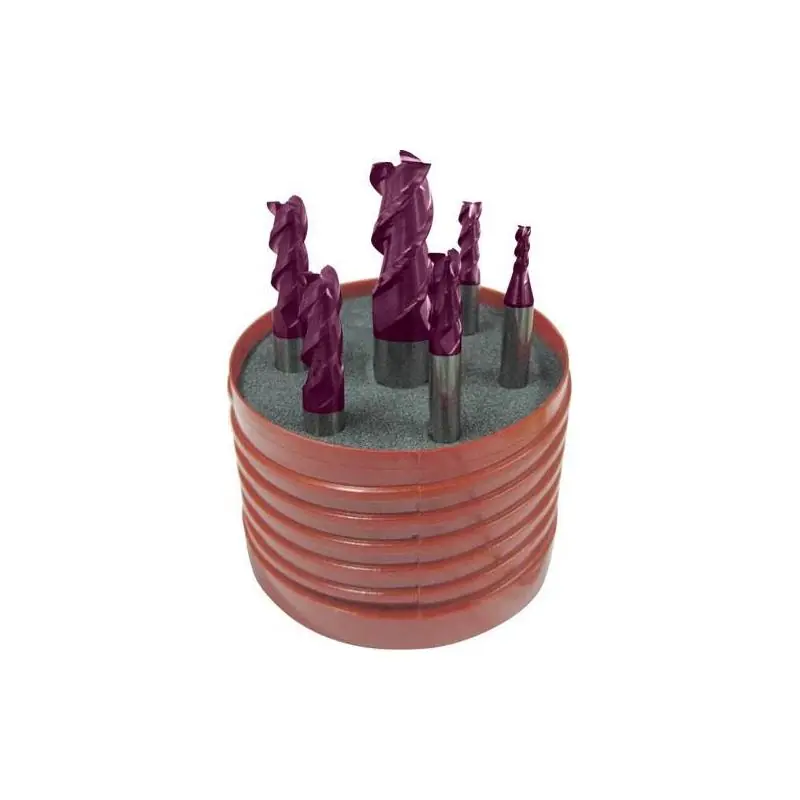 - Sada tvrdokovových fréz, typ N, DIN 6527, 45°, s povlakem TiAlN, se středicím řezem.
