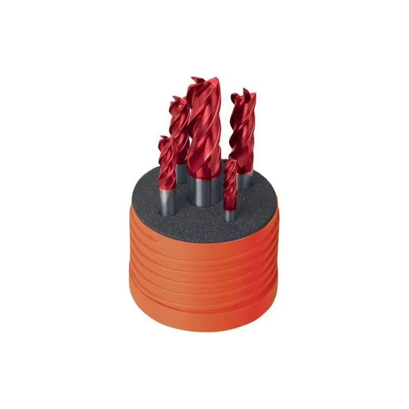 - Sada tvrdokovových fréz, velmi jemnozrnný slinutý karbid, typ N, DIN 6527, 35°/38°, s povlakem TiAlN, se středovým řezem.