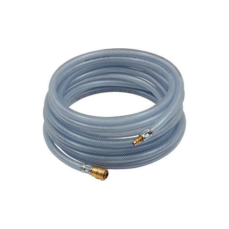 Design: Průhledná hadice z PVC s mosaznými přípojkami. Pružné, odolné proti tlaku, oděru a stárnutí. Teplotní rozsah od -15 °C do +60 °C. Dodává se s rychlospojkou a nasazovací tryskou NW 7.2.