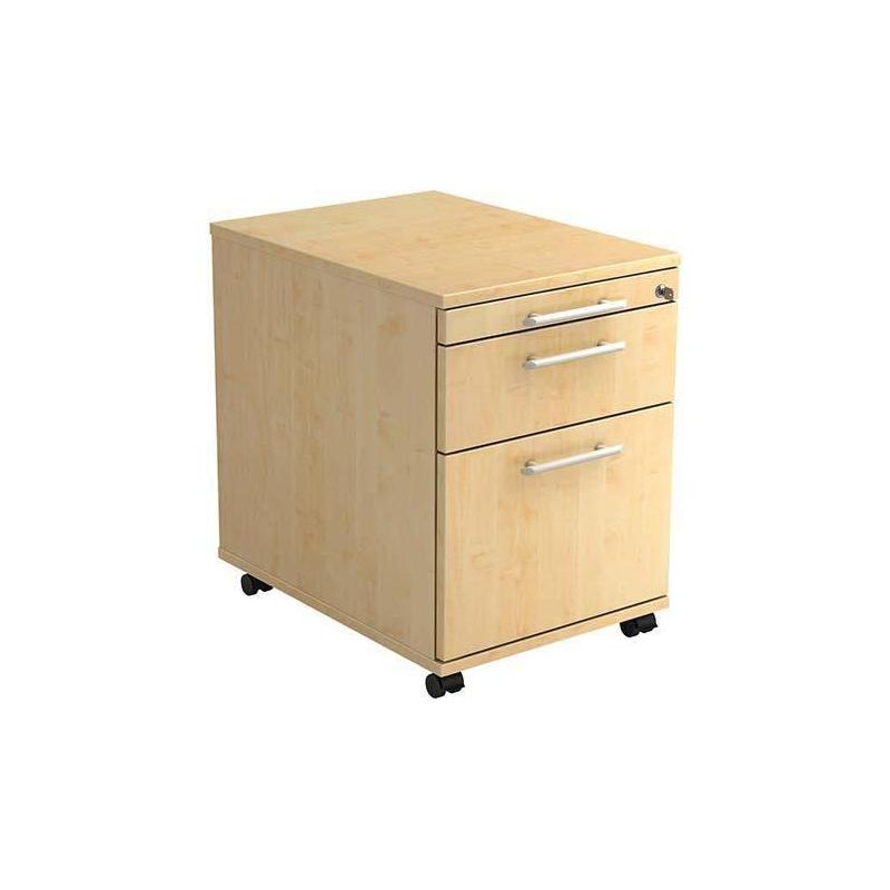 Koláčový kontejner s 1 zásuvkou a 1 závěsným pořadačem Korpus přilepený. Musí být namontována kolečka a madla. - Centrální zamykání a zásuvka Orga. Kontejnery se stejným klíčem, na vyžádání je možné jiné uzamčení. Teleskopické kovové pojezdy s kuličkovými ložisky a samočinným zavíráním. Střídavý výsuvný doraz . 1 vložka pro závěsný pilník, přední díl s podpěrou kapoty.