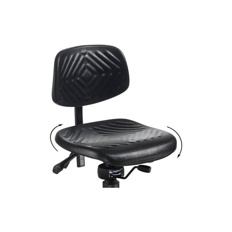 .Individuální nastavení sedadla. Opěradlo s kyvadlovou opěrkou, nastavitelná výška a sklon. Sedák a opěradlo volitelně s bukovou překližkou nebo polyuretanovou pěnou. Stabilní základna z obdélníkových ocelových trubek. Volitelně s podlahovými kluzáky nebo kolečky. Optimální stabilita. U vysokých židlí nesmí být z důvodu bezpečnosti při převrácení namontována kolečka. Může být dodatečně vybaven systémem mybtec 360°®