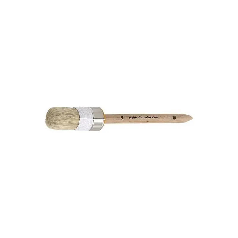 Design: Kulatý tvar, v niklovém kroužku, s nelakovanou dřevěnou rukojetí. Použití: Disperzní a nástěnné barvy i barvy a laky na bázi rozpouštědel.