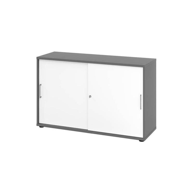 Skříň s posuvnými dveřmi, 2 OH, ŠxHxV 1200x400x748 mm - Uzamykatelný Zámky se stejným klíčem. Vrtání otvorů. Stohovatelné.