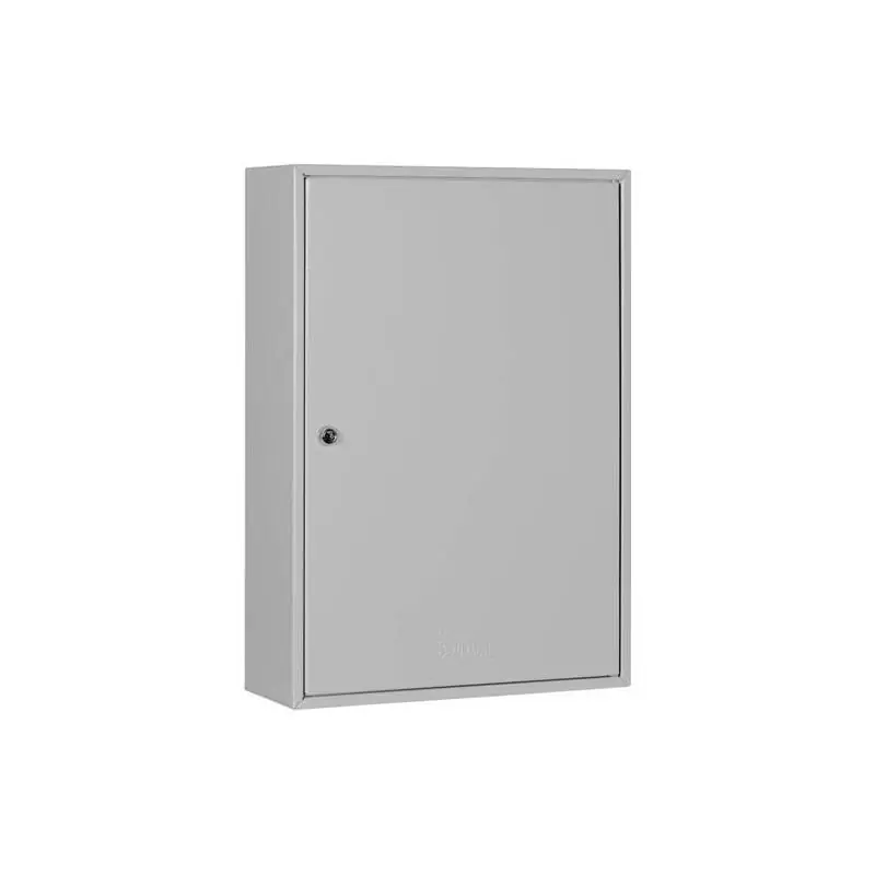 Klíčová skříň S - Všestranné použití Výškově nastavitelné hákové lišty v mřížce, možnost dodatečné montáže. - Bezpečný zámek Zámek s cylindrickou vložkou, 2 klíče nebo zařízení pro profilovou poloviční vložku (PHZ). Jednostranné zamykání dveří. Úhel otevření dveří 90°, závěs dveří vpravo. Zařízení pro ukotvení k zadní stěně včetně kotevního materiálu. - Práškové lakování RAL 7035 světle šedá. Klíčenka není součástí dodávky.