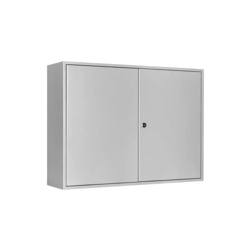 Klíčová skříň SZ - Dvojité dveře S otočným klíčovým rejstříkem. Výškově nastavitelné hákové lišty v mřížce, možnost dodatečné montáže. - Bezpečný zámek Zámek s cylindrickou vložkou, 2 klíče nebo zařízení pro profilovou poloviční vložku (PHZ). Třístranné zamykání dveří (ne u PHZ). Úhel otevření dveří 90°. Zařízení pro ukotvení k zadní stěně včetně kotevního materiálu. - Práškové lakování RAL 7035 světle šedá. Klíčenka není součástí dodávky.