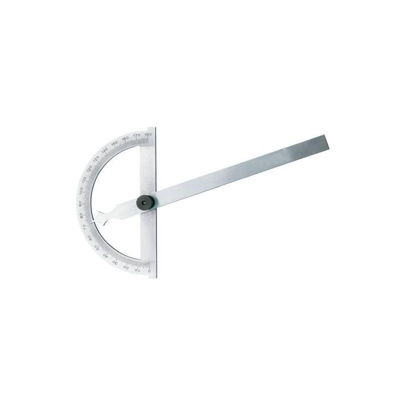 Provedení: Vyrobeno z nerezové oceli, matně chromované, tvrzené kolejnice. Kolejnice s úhlem 45° a 60°. Údaj vernieru 5 úhlových minut. Nůž a kotouč stupnice leží v jedné rovině, a zajišťují tak bezchybné odečítání bez paralaxy. S jemným nastavením pomocí knoflíkového šroubu a panoramatickou lupou se zorným polem přes celý nůž. Dodává se v dřevěném kufříku.