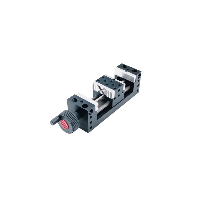 Vice with exchangable clamping jaws. The two-way double function enables a very flexible fixation. Connecting threads on the top of the jaws, allow for e.g. in combination with pinsthe internal fixation of e.g. tube workpieces.
