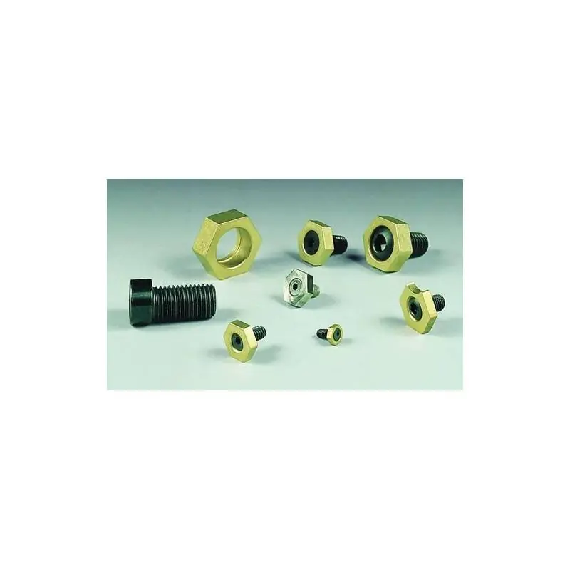 Konstrukce: Zvláštností tohoto upínacího zařízení je ocelový šroub (pevnost 10,9) s excentrickou hlavou. Excentr způsobuje upínací pohyb s velmi vysokou upínací silou. Mosazná šestihranná podložka slouží jako upínací prvek.