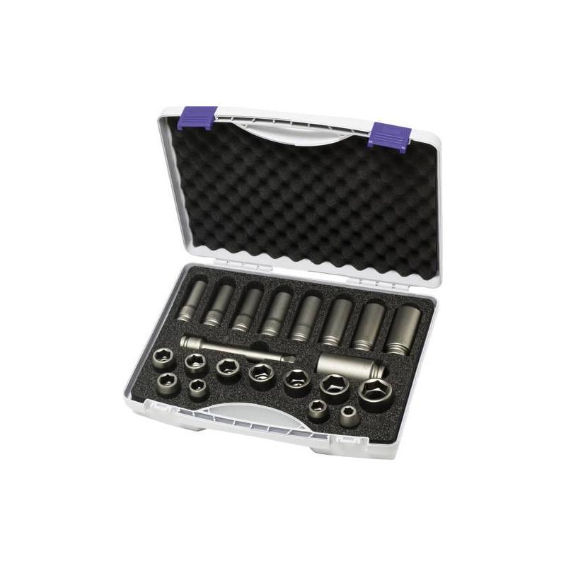 - 9 šestihranných napájecích zásuvek, dlouhých 13; 16; 17; 18; 19; 21; 22; 24; 27 mm