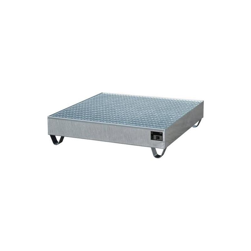 200litrová záchytná vana, řada 2000, pozinkovaná - Skladování max. 10 sudů à 200 litrů nebo max. 3 IBC kontejnerů à 1000 litrů. Lze kombinovat i s 60litrovými sudy a malými kontejnery. Konstrukce z pozinkovaného 3mm ocelového plechu. 100 mm světlá výška. Rošty: nosnost 1000 kg/m²