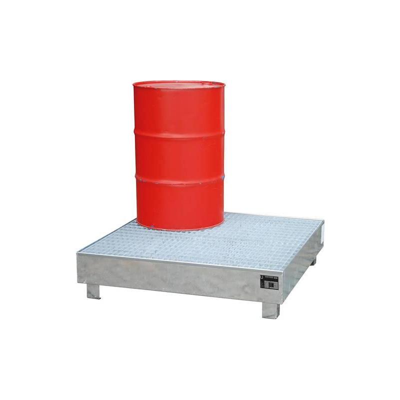 200litrová záchytná vana, řada WM WO - Skladování max. 4 sudů po 200 litrech. Lze kombinovat i s 60litrovými sudy a malými kontejnery. Konstrukce z 3 mm pozinkovaného ocelového plechu. 100 mm světlá výška. Možnost přepravy pomocí paletového vozíku a vysokozdvižného vozíku. Povrch žárově pozinkovaný. S pozinkovaným roštem (nosnost 1000 kg/m²).
