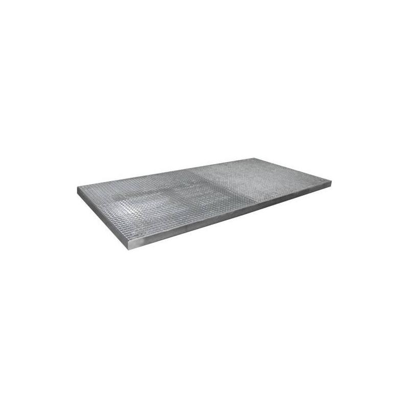 Ochranná podlahová vanička BW 21-24 - Ochranný žlab na podlaze pro skladování a plnění. Výška 78 mm. Plošné zatížení 5000 kg/m². Zatížení kol 500 kg. Přístupný pomocí paletového vozíku nebo vysokozdvižného vozíku. Pozinkovaný povrch. - Modulární konstrukce Skládá se z podlahové ochranné vany, nájezdové rampy, nájezdového rohu, křížové spojky, spojky vany.