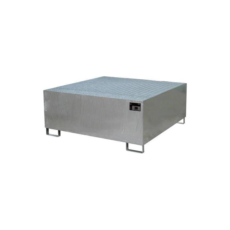 Záchytná vana pro sudy nebo IBC kontejnery, pozinkovaná. -Skladování max. 10 sudů à 200 litrů nebo max. 3 IBC kontejnerů à 1000 litrů. Lze kombinovat i s 60litrovými sudy a malými kontejnery. Konstrukce z 3 mm ocelového plechu. 100 mm světlá výška. Pozinkovaný rošt (nosnost 1000 kg/m²). -Skladování max. 10 sudů à 200 litrů nebo max. 3 IBC kontejnerů à 1000 litrů. Lze kombinovat i s 60litrovými sudy a malými kontejnery. Konstrukce z 3 mm ocelového plechu. 100 mm světlá výška. Pozinkovaný rošt (nosnost 1000 kg/m²).