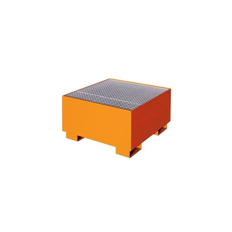 Záchytná vana s rovnými bočními stěnami, RAL 2004 - Pohodlné a robustní Vyrobeno z 3 mm ocelového plechu. Snadné skladování na mřížce. - Skladování v souladu s právními předpisy Pro kapaliny znečišťující vodu a hořlavé kapaliny. - Manipulace s vysokozdvižným vozíkem a zdvihacím zařízením Lze vjíždět průmyslovými vozíky (světlá výška 100 mm).
