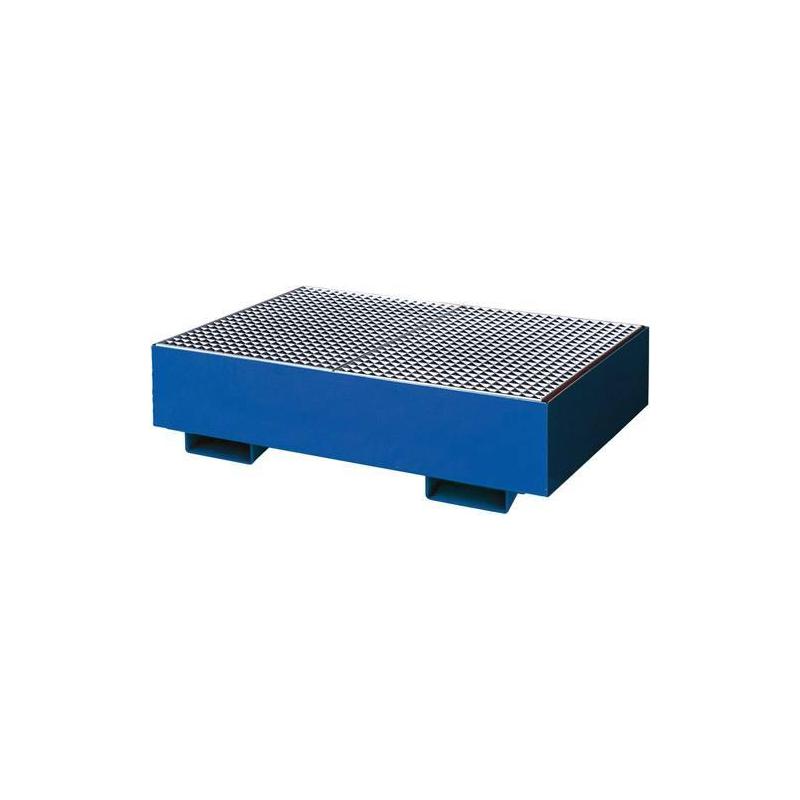Sběrná vanička s rovnými bočními stěnami, RAL 5010 - Pohodlné a robustní Vyrobeno z 3 mm ocelového plechu. Snadné skladování na mřížce. - Skladování v souladu s právními předpisy Pro kapaliny znečišťující vodu a hořlavé kapaliny. - Manipulace s vysokozdvižným vozíkem a zdvihacím zařízením Lze vjíždět vysokozdvižnými vozíky (světlá výška 100 mm).