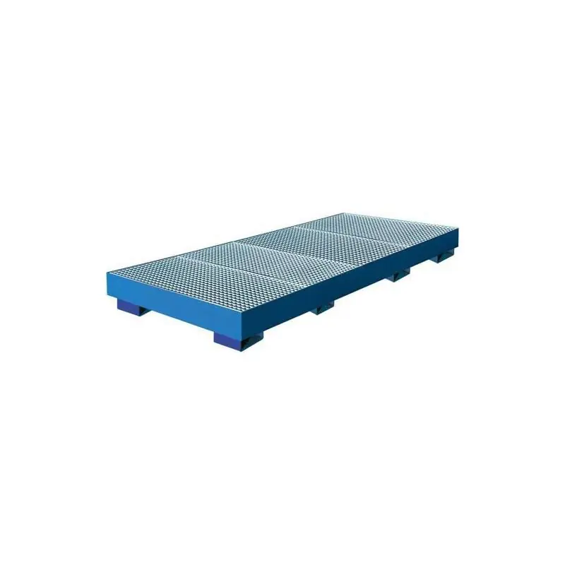 Sběrná vanička s rovnými bočními stěnami, RAL 5010 - Pohodlné a robustní Vyrobeno z 3 mm ocelového plechu. Snadné skladování na mřížce. - Skladování v souladu s právními předpisy Pro kapaliny znečišťující vodu a hořlavé kapaliny. - Manipulace s vysokozdvižným vozíkem a zdvihacím zařízením Lze vjíždět vysokozdvižnými vozíky (světlá výška 100 mm).