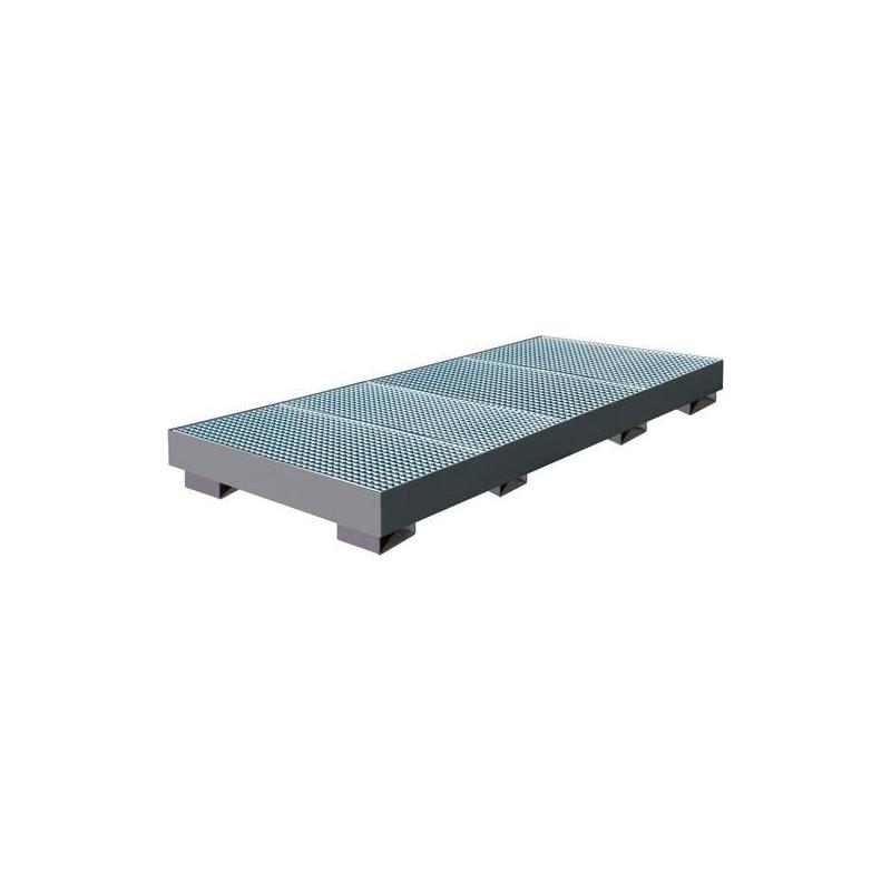 Sběrná vanička s rovnými bočními stěnami, RAL 7016 - Pohodlné a robustní Vyrobeno z 3 mm ocelového plechu. Snadné skladování na mřížce. - Skladování v souladu s právními předpisy Pro kapaliny znečišťující vodu a hořlavé kapaliny. - Manipulace s vysokozdvižným vozíkem a zdvihacím zařízením Lze najet průmyslovými vozíky (světlá výška 100 mm).