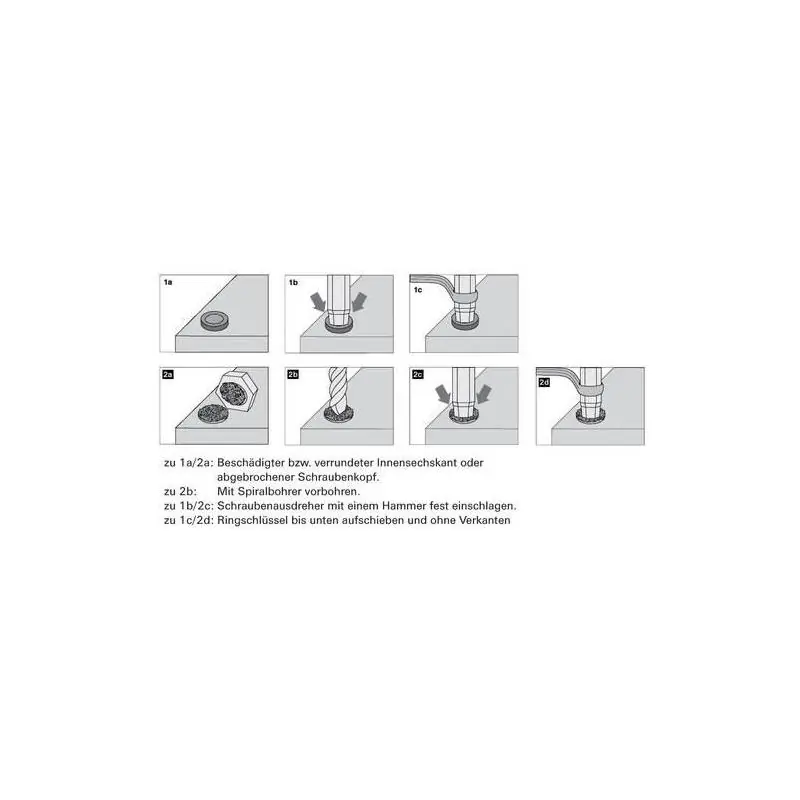 Použití: K odstraňování poškozených nebo zlomených šroubů, zejména opotřebovaných vnitřních šestihranných šroubů. Opotřebované vnitřní šestihranné šrouby se odstraňují přímo pomocí příslušného stahováku šroubů bez vrtání. V případě ulomených hlav šroubů se šroub nejprve předvrtá spirálovým vrtákem a poté se odstraní příslušným vytahovačem šroubů.