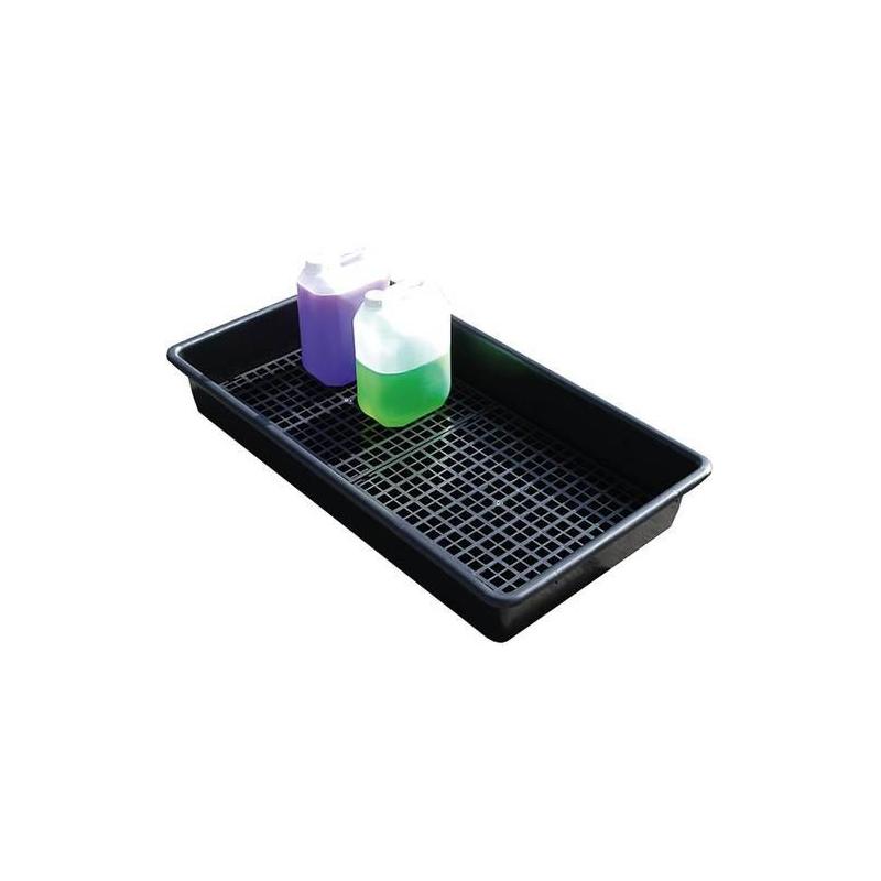 PE odkapávací misky TT - Flexibilní a širokopásmová aplikace chemických látek. Pro skladování kapalin a zadržování nebezpečných látek v případě úniku. Vhodný jako zásobník na rozlitý olej, zásobník na pracovní stůl, pro přenášení a plnění. - Pro malé nádoby Stohovatelné a prostorově úsporné. Velmi odolný vůči alkáliím, olejům a kyselinám. Vyrobeno z polyethylenu. Barva: černá.