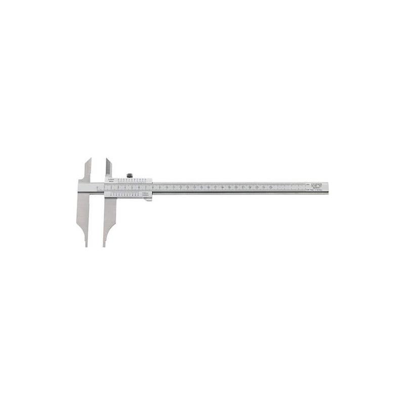 Dílenské měřidlo s měřením bez paralaxy. Konstrukce: Vyrobeno z nerezové oceli, kalené, čtecí části a nonius matně chromované a vysoce přesné laserové měřítko, přímé čtení vnitřního a vnějšího měření, s hroty nožů a zajišťovacím šroubem. Dodává se v přepravním obalu. Použití: Pro vnitřní a vnější měření.