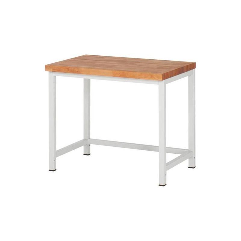 Pracovní stůl bez zásuvek, stacionární H 840-1040 mm -Vysoce kvalitní svařovaná konstrukce. Rám z ocelové profilové trubky 45x45 mm. -Pracovní plocha Materiál: bukový masiv, povrch je chráněn ekologickým lakovým olejem. Tloušťka: 40 mm. -Ekologicky šetrné práškové lakování Kryt: světle šedá RAL 7035. Zásuvky/dveře: RAL 5010 hořcově modrá. -Stacionární verze Maximální plošné zatížení 1250 kg. Dodává se kompletně smontovaný!
