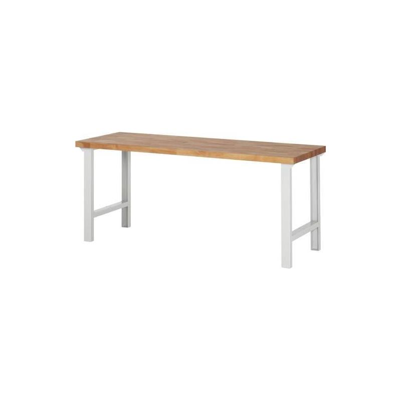 Pracovní stůl řady BASIC-7, V 840 mm - Vysoce kvalitní svařovaná konstrukce Rám z C-profilu v kombinaci s kontejnery spodní konstrukce. - Pracovní deska Materiál: bukový masiv, povrch je chráněn ekologickým lakovým olejem. Tloušťka: 40 mm. - Max. plošné zatížení: 750 kg (u modelů se 2 patkami rámu). - Práškové lakování šetrné k životnímu prostředí Rám: světle šedá RAL 7035.