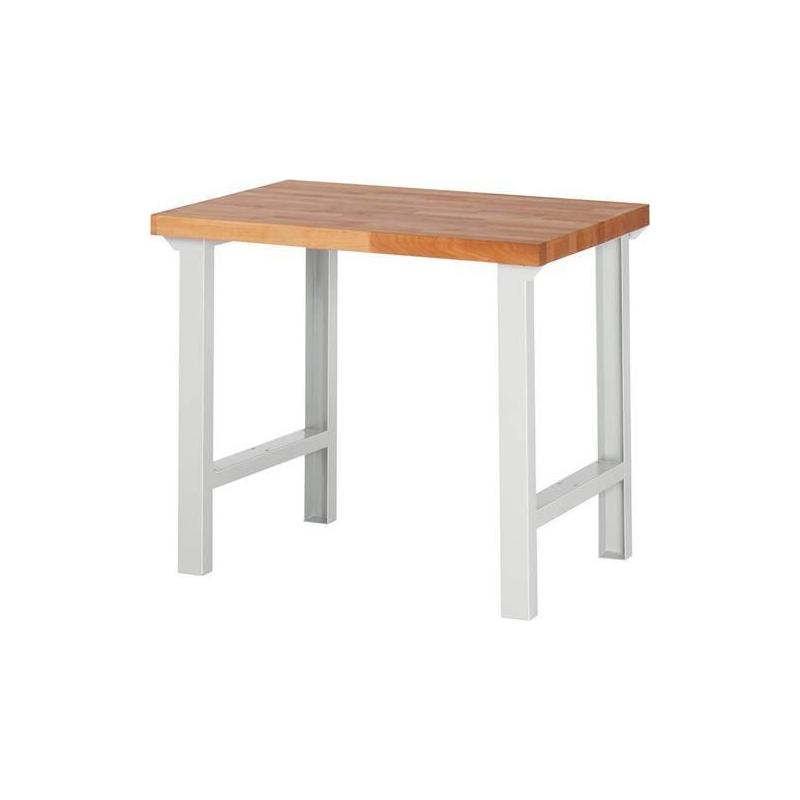 Pracovní stůl řady BASIC-7, V 840 mm - Vysoce kvalitní svařovaná konstrukce Rám z C-profilu v kombinaci s kontejnery spodní konstrukce. - Pracovní deska Materiál: bukový masiv, povrch je chráněn ekologickým lakovým olejem. Tloušťka: 40 mm. - Max. plošné zatížení: 750 kg (u modelů se 2 patkami rámu). - Práškové lakování šetrné k životnímu prostředí Rám: světle šedá RAL 7035.