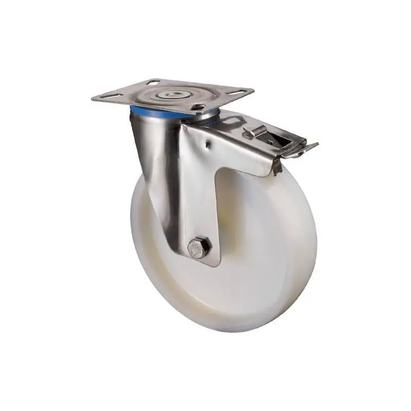 Kolečko pro dopravní prostředky z nerezové oceli, otočné kolečko s celkovou brzdou, polyamidový pás na plastovém ráfku