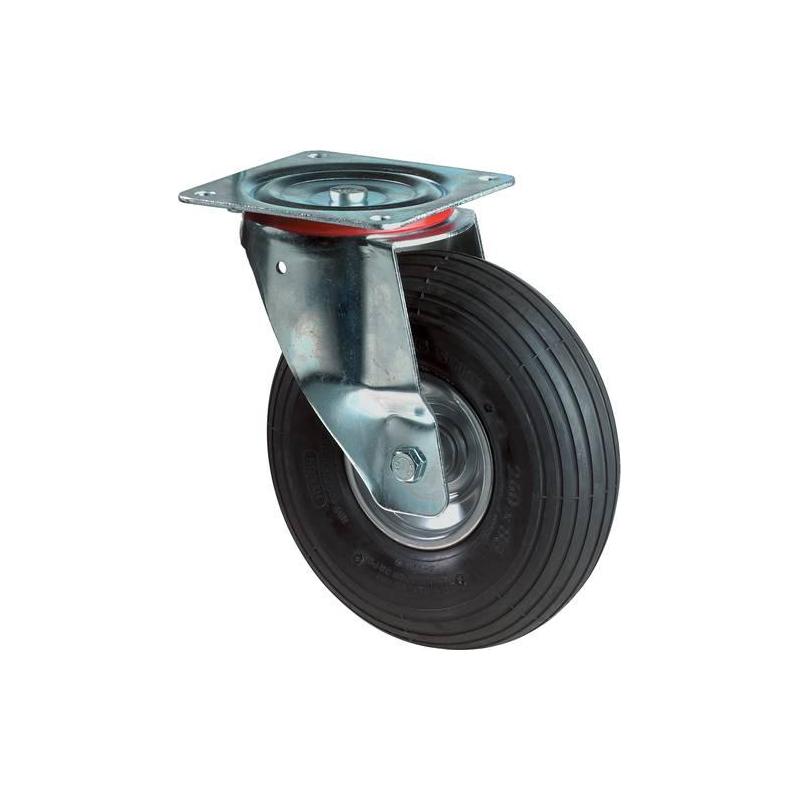 Pneumatické kolo, ocelový ráfek, válečkové ložisko, drážkovaný profil.