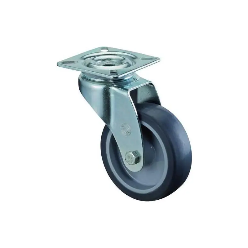 Kryt: ocelový pozinkovaný plech, dvouřadá sestava koule a klece v hlavě vidlice. Kolo: gumové kolo šedé barvy, kluzné ložisko