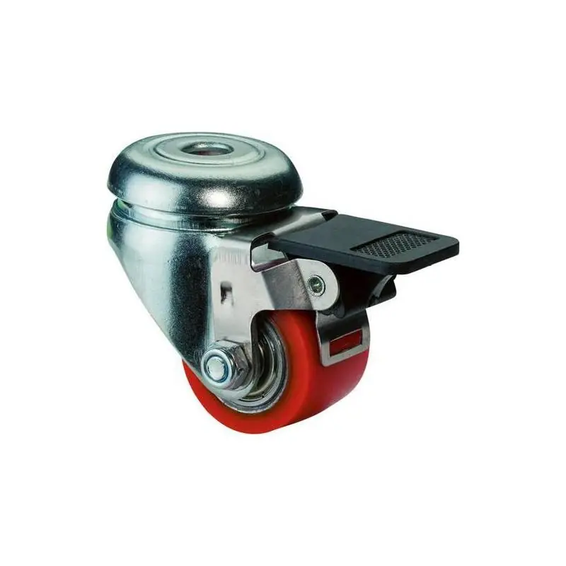 Kompaktní otočné kolečko s brzdou Konstrukce:Vidlice z ocelového plechu, dvouřadá sestava koulí a klece v hlavě vidlice. Běhoun: polyuretan, 90+/3 Shore A Střed kola: ocel Ložisko:Kuličkové ložisko