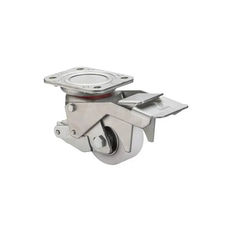 Kompaktní otočné kolečko Konstrukce: vidlice z pozinkovaného ocelového plechu, dvouřadá sestava koule a klece v hlavě vidlice. Zvedací deska: upevnění pomocí šroubovací desky Pákový mechanismus: s pojistnou maticí Aretační patka: vyrobena z oceli, lze zcela zajistit pomocí pojistné matice, spodní strana s protiskluzovou gumou, lze volně pohybovat v úhlu 30 stupňů