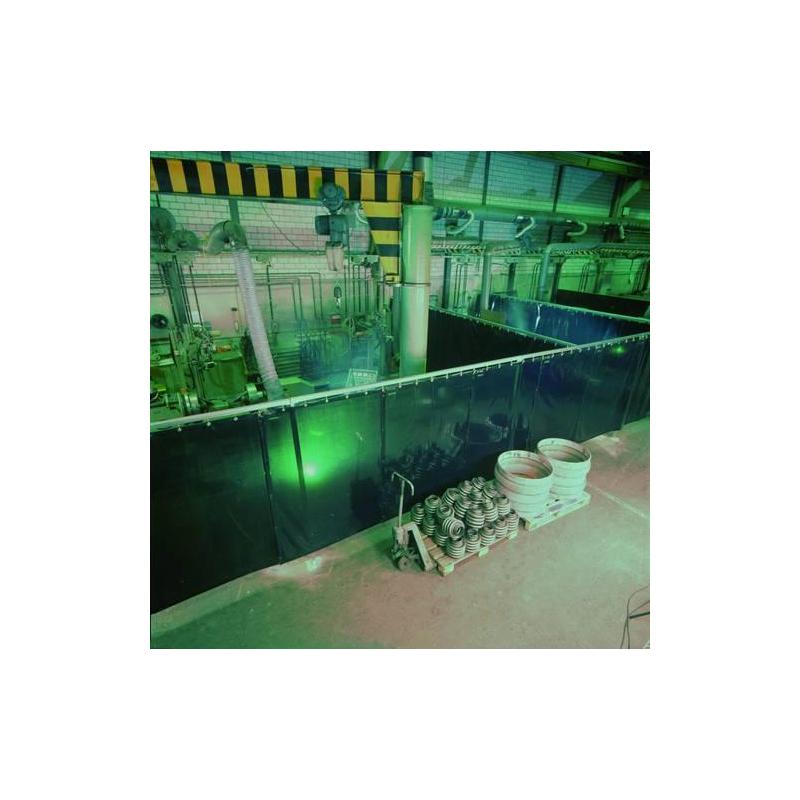 Podle DIN EN 1598. Oblast použití: všechny svařovací procesy. Po celém obvodu je lem odolný proti roztržení, horní okraj je vyztužen plastovými kroužkovými oky, na bocích jsou patentky pro navlečení několika záclon.
